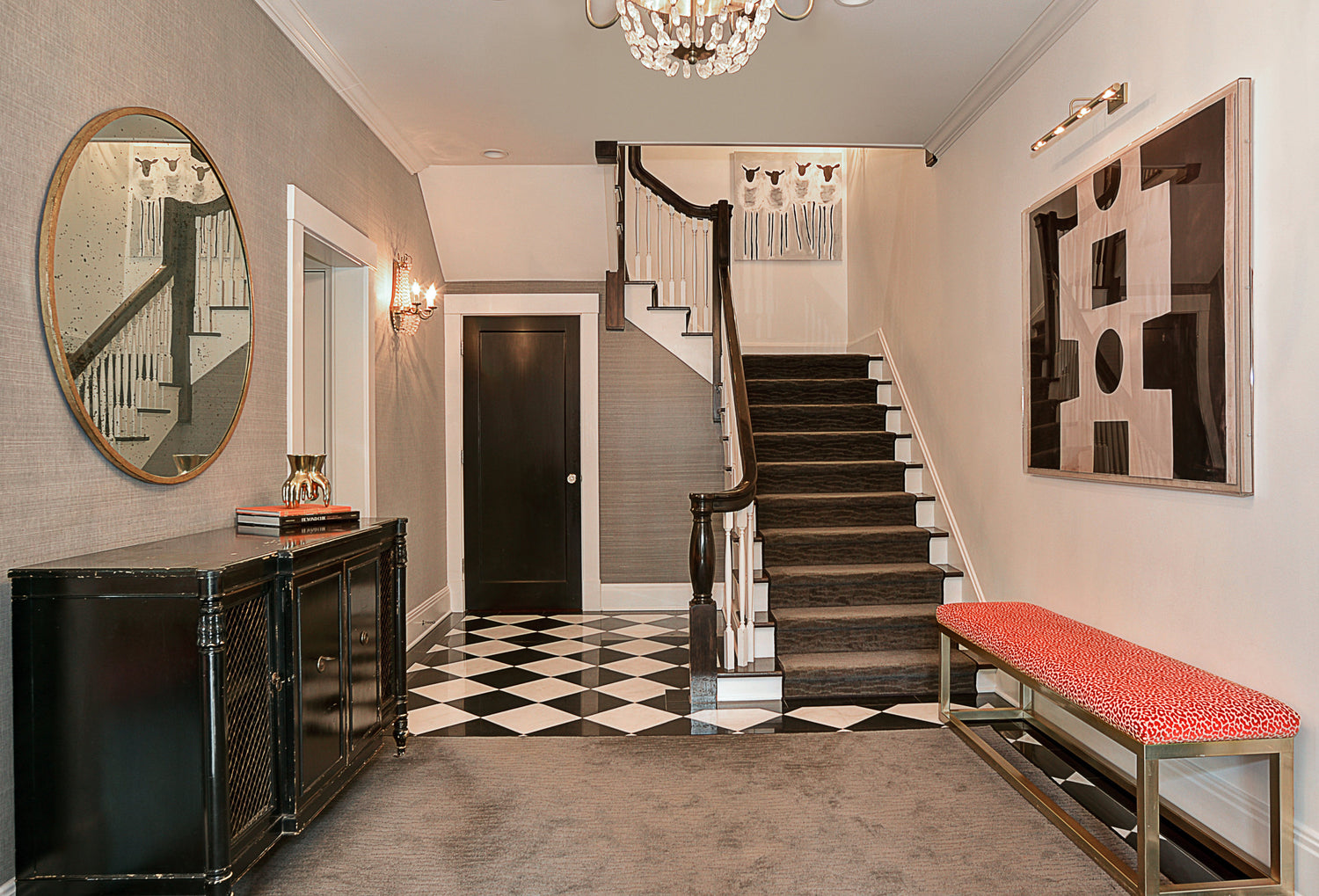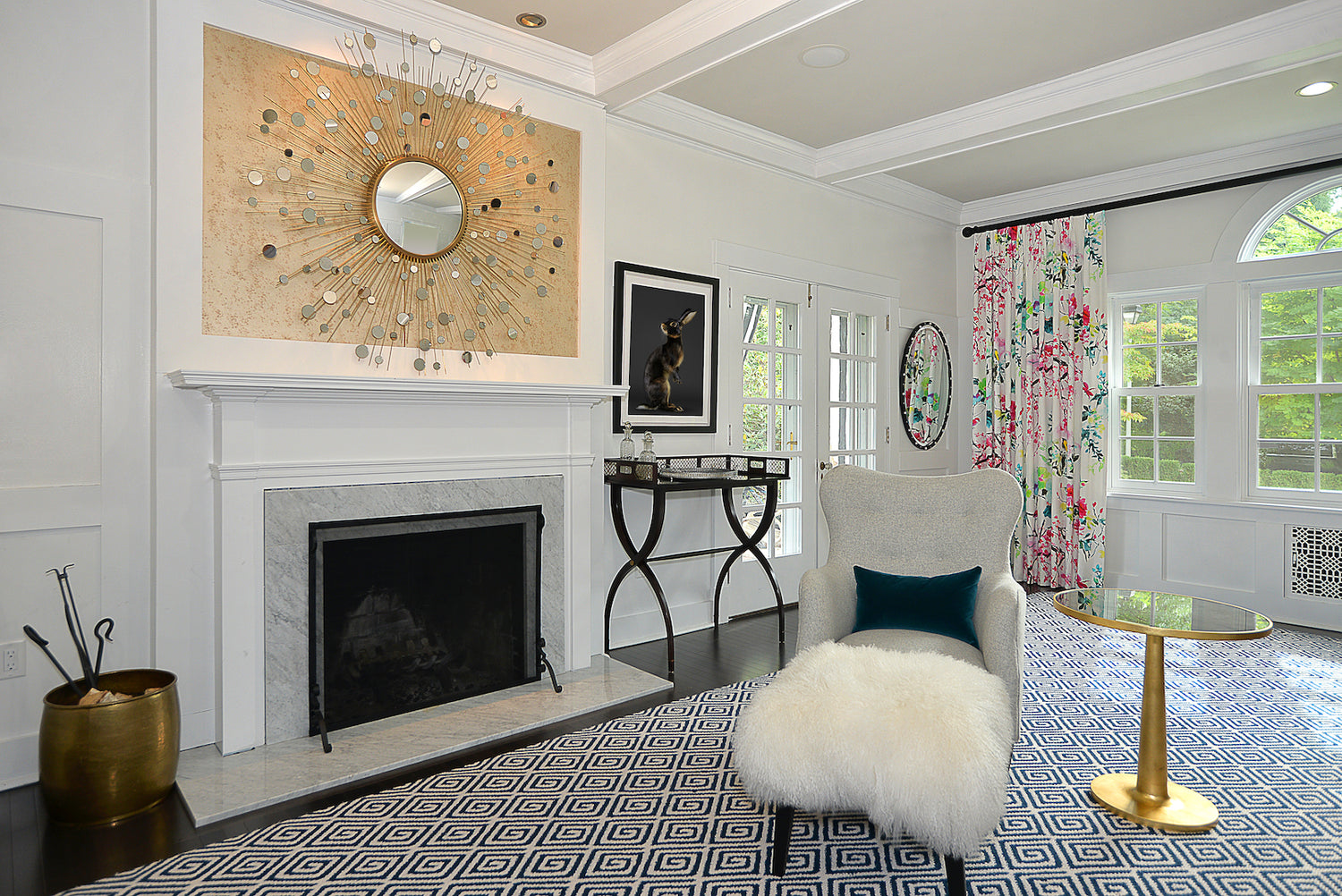 The solution? Exaggerated, dramatic colors juxtaposed by a cool neutral backdrop. I enhanced the gorgeous marble and woodwork that already existed in the space, rather than overshadowing it, with unique touches like bespoke window treatments, textured wall coverings, artisan carpets, and unique and comfortable upholstery, designed by me and constructed with fabric from the best textile designers on the market.