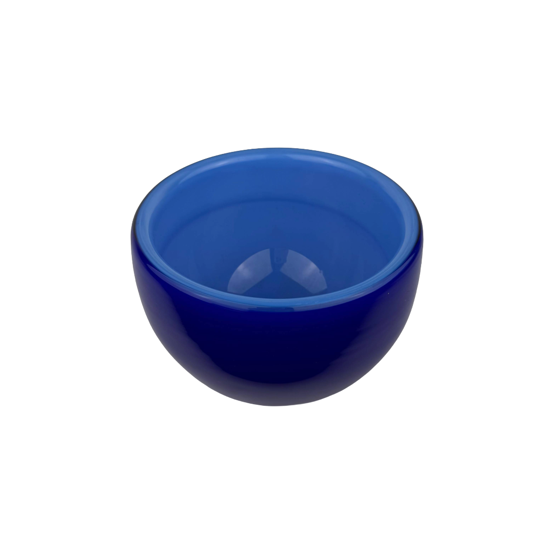 A vintage find with luminous color and sculptural presence, this Blue Glass Bowl is as functional as it is decorative. Its brilliant hue catches the light with ease, adding depth and character whether left empty or used as a catchall. Modest in scale yet full of personality, it sits beautifully on a console, side table, or styled shelf.