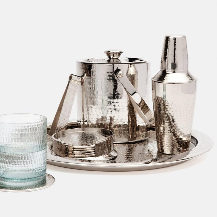 Modernize your bar with the gleaming etched texture of this chic tray from Blue Pheasant. The Winsford’s crisscross-patterned surface adds a textural depth to its bottle-service-worthy shine.