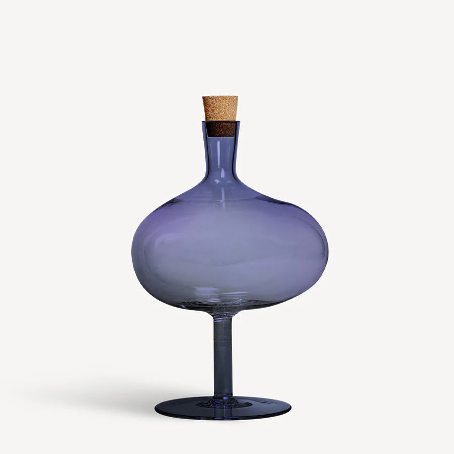 The Bod Collection, nominated for the Swedish Design Awards, embodies the poise of a tall wineglass and the quiet elegance of Scandinavian design. Its elongated form catches and reflects the light, revealing subtle depth within the midnight blue glass. Handmade and set on a graceful foot, it serves beautifully as a vase, vessel, or decorative object. A removable cork is included.