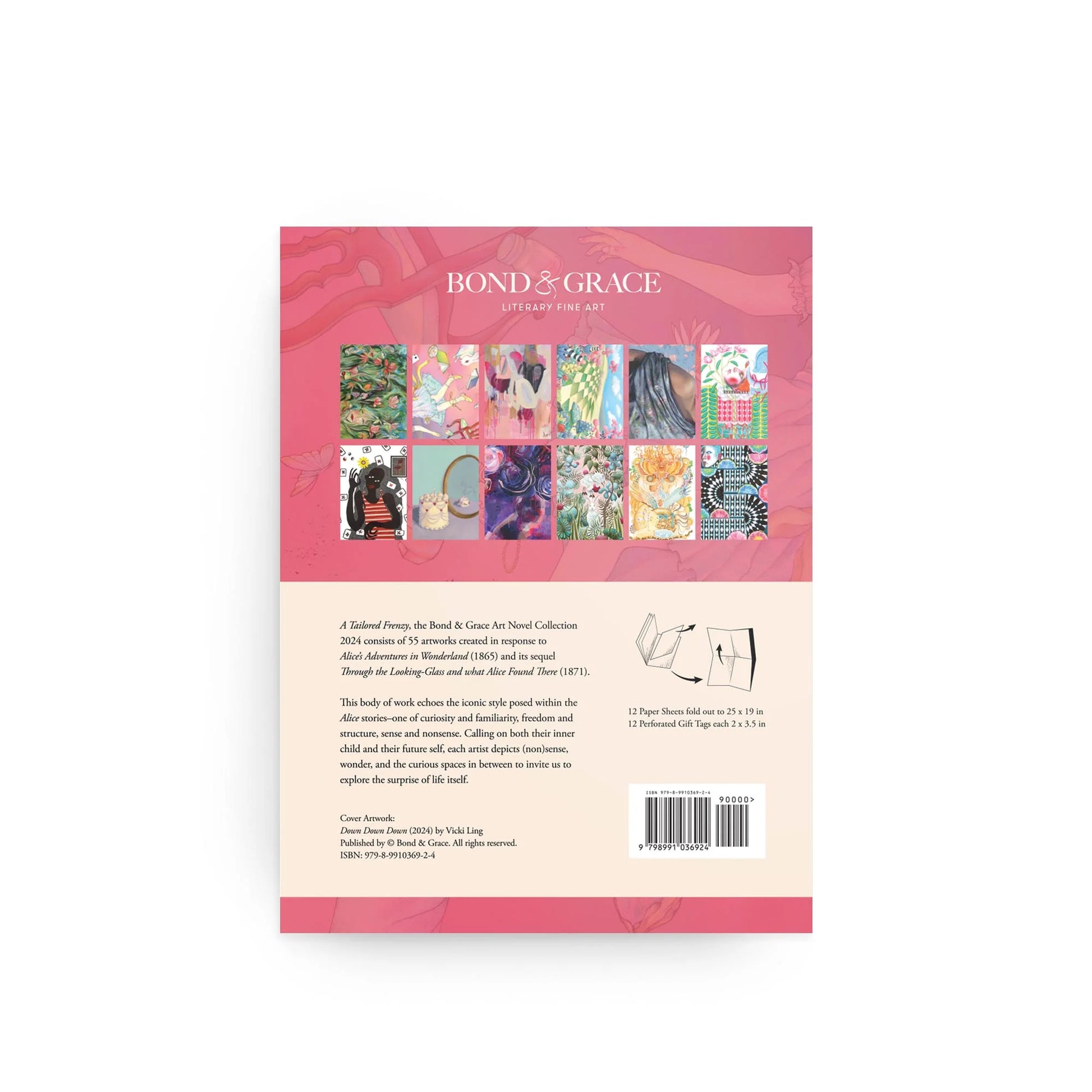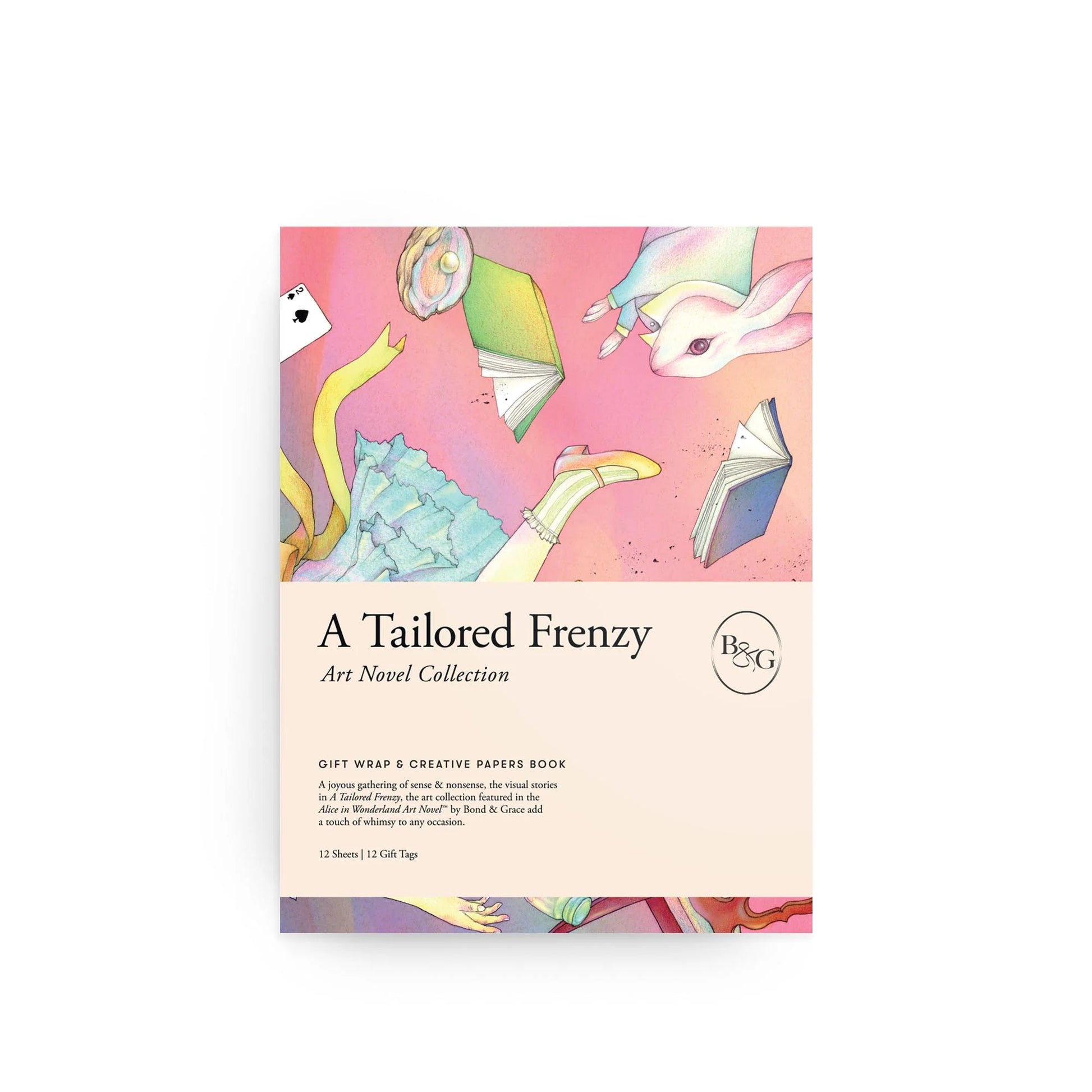 Perfect for gift-givers and design fans, this exquisite collection of gift wraps and creative papers celebrates the spirit of play and adventure. Featuring artwork from A Tailored Frenzy Art Collection, as seen in the Alice in Wonderland Art Novel, each sheet adds a whimsical and sentimental touch to any project. Whether wrapping gifts, lining envelopes, or crafting personalized journals, these designs bring depth and charm to every occasion. The perforated edges allow for easy removal, while the book format ensures safe storage. At 10" x 13", it includes 12 matte FSC-certified sheets (25" x 19" unfolded) and 12 coordinating gift tags, all curated and designed by Bond & Grace.