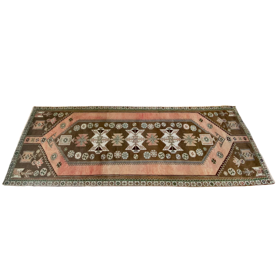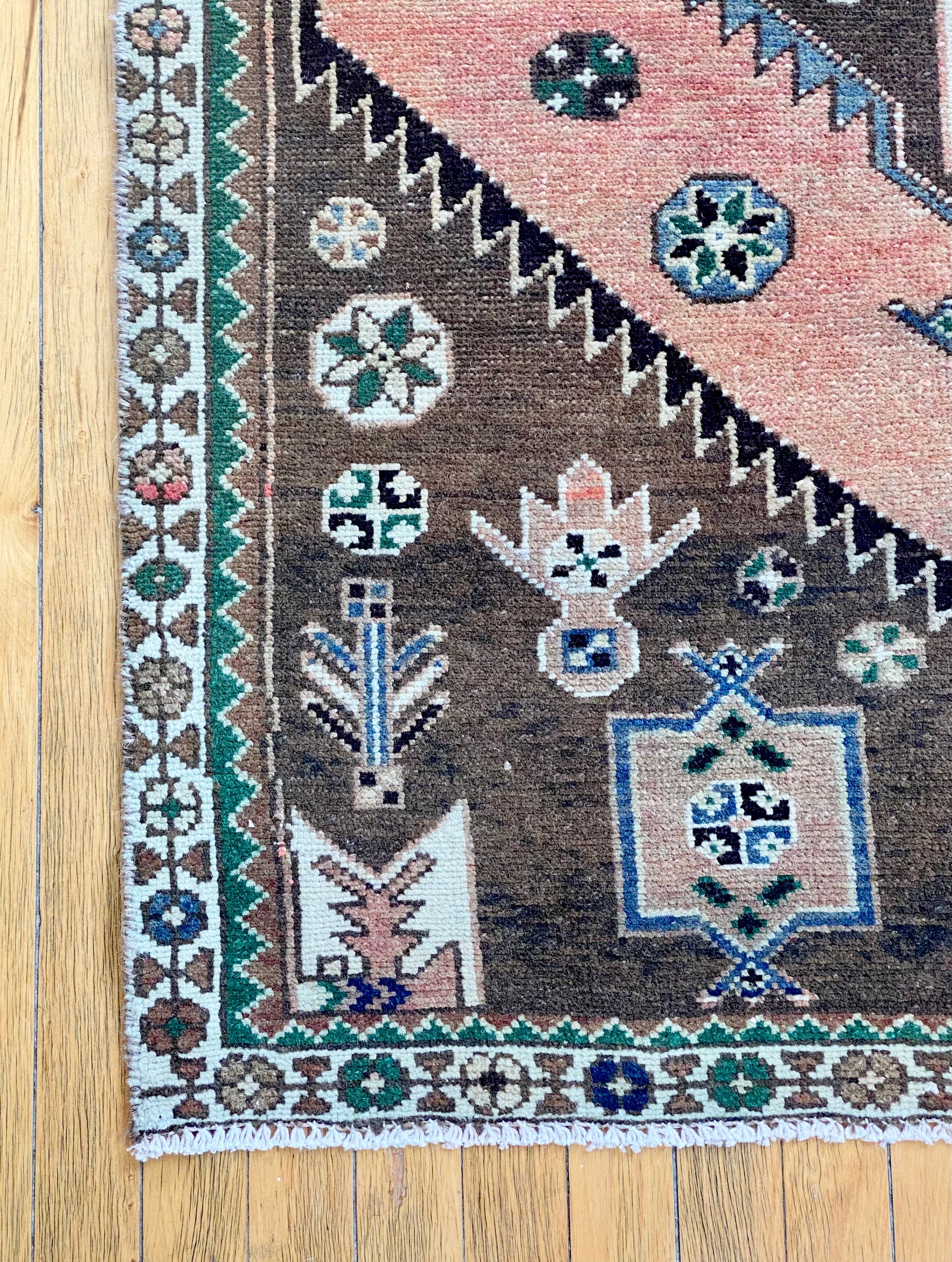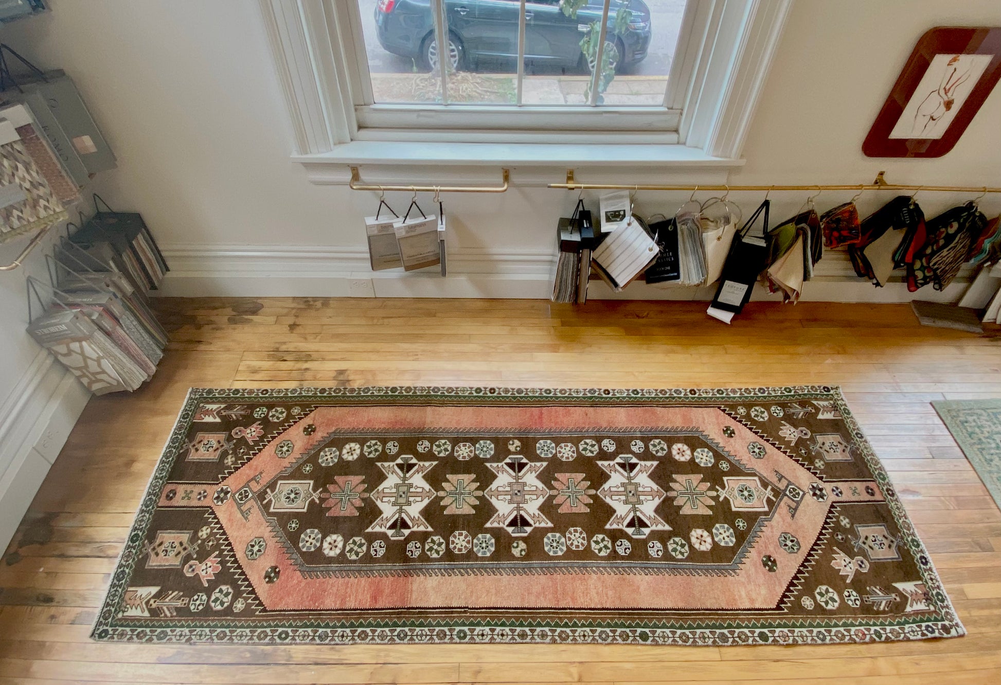 This is a vintage tribal 3'6 x 9'10 over-dyed rug from Persia.