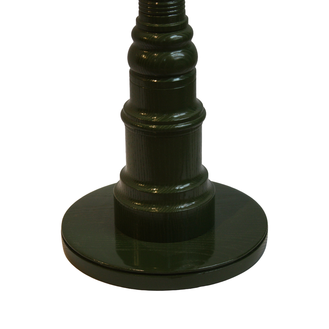 The Dunes and Duchess Drink Drop Table is a stunning accent next to a lounge chair. Its olive-green color and glossy finish add charm, while its shape and visible grain give it unique character.
