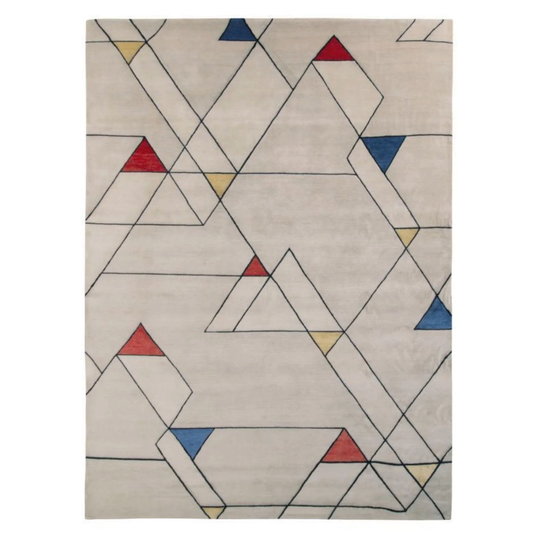 A 6' x 8' rug from Rug & Kilim’s Mid-Century Modern Collection, hand knotted in wool in prevailing silver-gray colors. Joyful multicolor hues accent the geometry with a smart sense of movement and play with the metallic undertone. Exemplifying the scale, graph, refined texture, and overall chic of this collection—particularly versatile as a large-size rug.