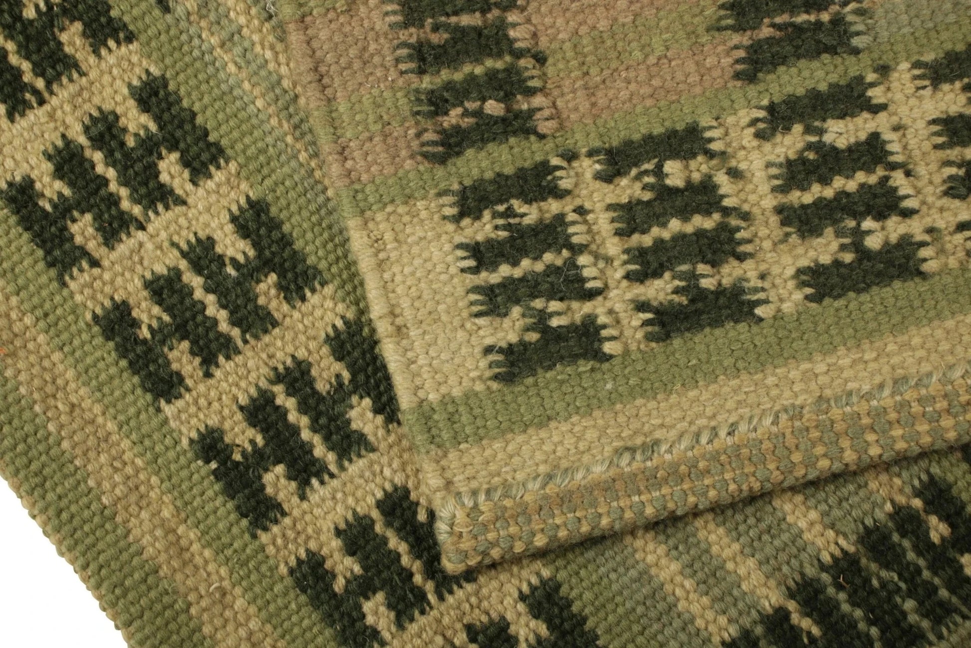 Green and Beige Geometric Scandinavian Rug