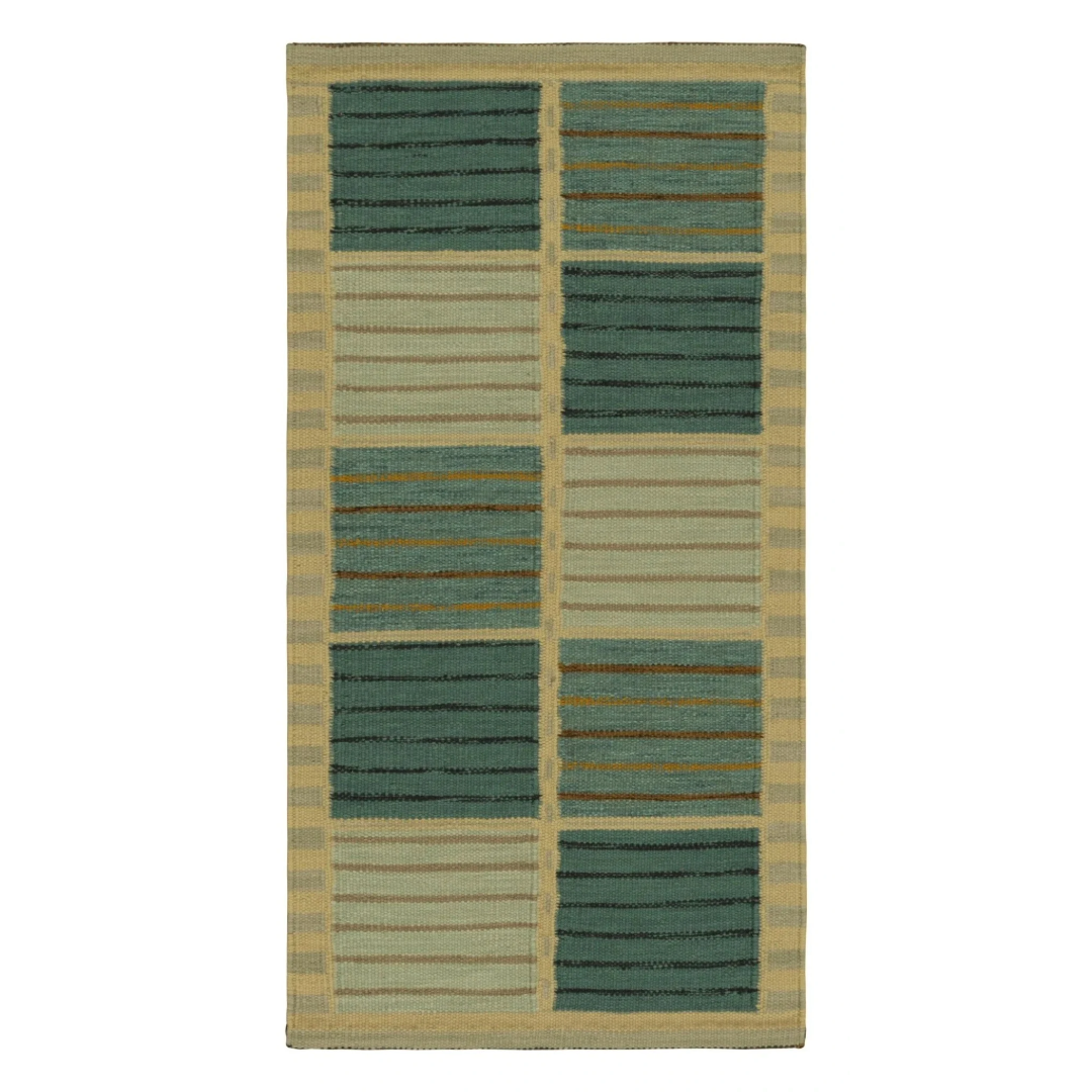 From an exciting new collection of gift-size pieces, this 3×6 Swedish runner is a bold new addition to the Scandinavian Collection by Rug & Kilim. Handwoven in a wool flatweave with undyed natural yarns as well, its design is inspired by Swedish minimalist designs.