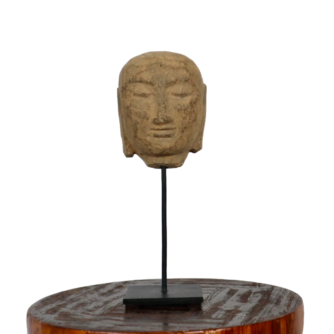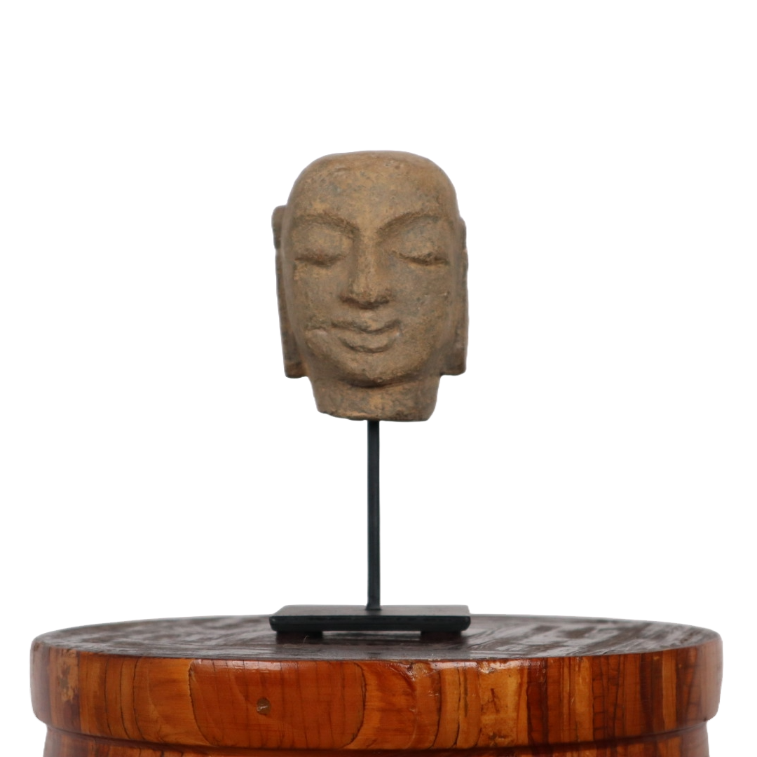 These vintage Stone Buddha Heads on Stands offer a quiet sense of reverence and history. Carved from weathered grey stone, each piece bears the soft patina of time, with subtle variations that make them uniquely soulful. Elevated on simple stands, they bring a contemplative, sculptural presence to any space—equally at home in a curated corner or serene vignette.