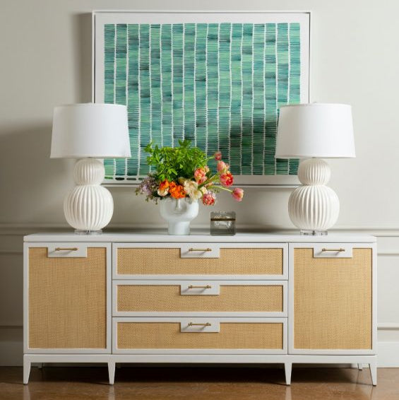 With its fluted form and pale gloss finish, the Meridian Lamp has an effortless, floating quality, echoing the classic double-gourd silhouette from China’s Song Dynasty. Handcrafted in American ceramic with a clear acrylic base, it feels both timeless and fresh, while a high-gloss glaze enhances its depth. Place one on a console, side table, or dresser to highlight its sculptural shape.